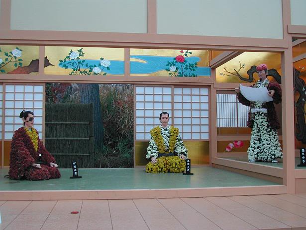 菊人形第7景は「伊達政宗 書簡の花押」です。政宗が豊臣秀吉から疑惑を持たれ呼び出された際に、証拠の文書の”花押(署名)”が自分のものとは違うと訴えている様子です。本人にしか分からないように細工がしてあったんですね。