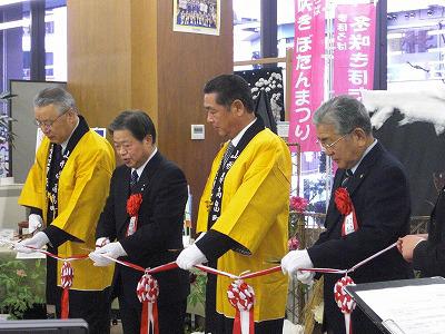 本店ロビーにて、まほろば冬咲きぼたん祭りの展示と、