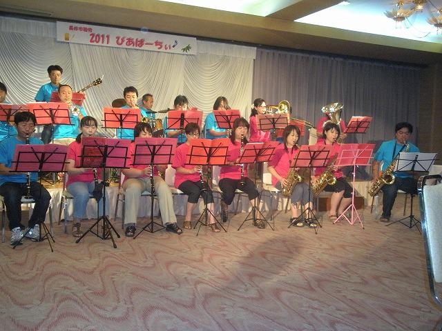 昨日、長井市のはぎ苑にて行われた長井市職員の方々の「ビアぱーちぃー(看板にはこう書かれていました)」での演奏依頼をいただきました。