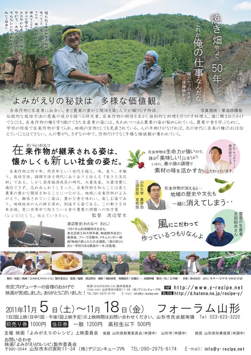 ▼「よみがえりのレシピ」がフォーラム山形で上映されます