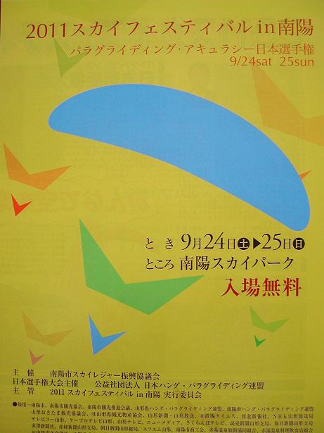9月24日(土)〜25日(日)と『2011スカイフェスティバルin南陽』が行われます。