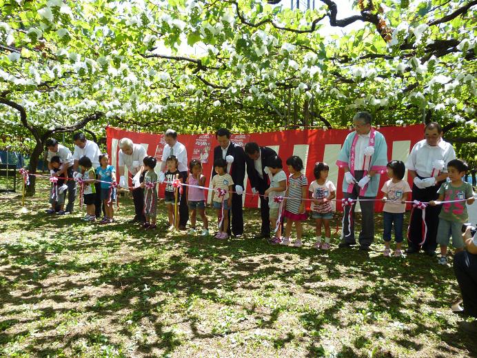 式典終了後は、ご参列された皆さんに、もぎたてのぶどうを味わっていただきました♪