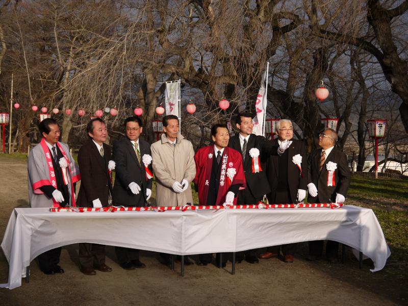 4月15日に開幕した「赤湯温泉桜まつり」、本日開花宣言が出されました。開幕初日には点灯式が執り行われ、公園中の提灯が一斉に点灯しました。