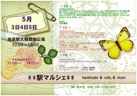 ゴールデンウィーク期間中(5月3日〜5日) 高畠町太陽館前(JR高畠駅)にて駅マルシェが開催されます。ハンドメイドショップや美味しい食べ物、そして楽しい音楽あふれる会場に是非おこしください。