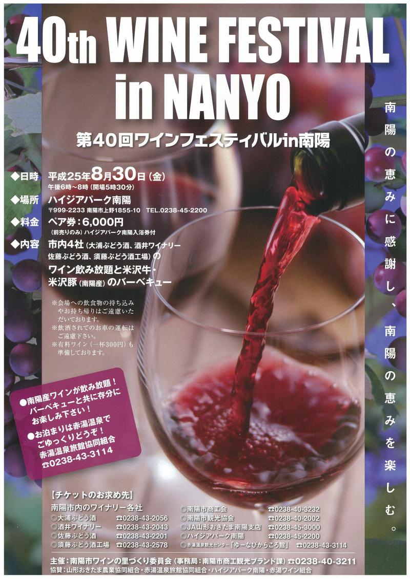 8月30日(金)に”ハイジアパーク南陽”にて「第40回ワインフェスティバルin南陽」が行われます。