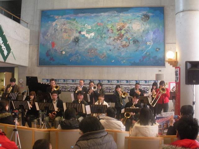 昨日フレンドリープラザにて10回目となる「第20回東北学生音楽祭」が行われました。今年も出演者アーンド酒屋の出店という2つの立場として参加しました。今回は10年目という節目の年6年ぶりとなる映画「スウィングガールズ」の映画も上映されました。午前はロビーでの演奏私はSFJO(スウィングフレンズジャズオーケストラ)とアニバーサリーバンドの2団体の出演午後からは舞台をホールに移して映画の上映や学生さんたちの演奏そしてラストに一般参加者も交えての合同演奏私はその中のアルカディアjazz楽団にも参加練習不足の中何とか演奏を乗り切りました(~_~;) 1年ぶりに会う懐かしい顔ぶれもちらほらもうこのイベントならではの風景となりました。 来年からは少し趣向を変えての開催になりそうですどのような形になるのかはまだ未定のようですが。 お酒の売り上げもなかなか良かったです!(^^)!買って頂いたお客様、ありがとうございました!!