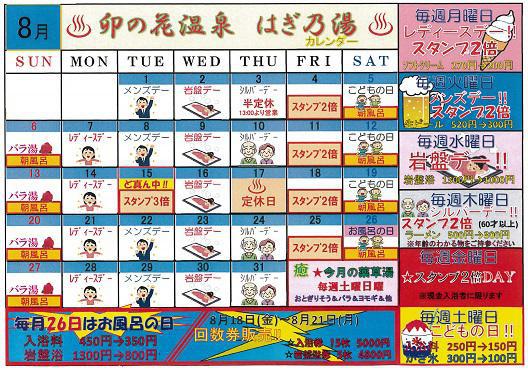 ▼8月はぎ乃湯カレンダー/はぎ苑