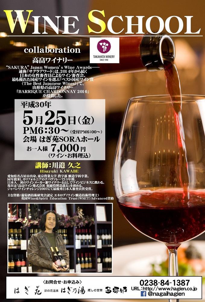 5月25日(金) 高畠ワイナリーの川邉久之(Hisayuki Kawabe)さんをお迎えしてワイン講座を行います!先着30名様限定です!ワインが好きな方!ワインに親しんでみたい方!是非川邉さんの講座を受けてみませんか?『WINE SCHOOL collaboration 高畠ワイナリー』5/25(金) PM6:30〜場所 はぎ苑 SORAホール会費 7,000円 (ワイン・お料理込※)※前菜・魚料理・肉料理・デザート・パンなどを予定しています。川邉久之氏はカリフォルニアナパバレーで日本人初のワインメーカー兼ワイナリー長になった醸造家でありワイン造りのプロです。帰国後はその経験を生かし、醸造学の講師・ワインセミナー・ワインコンサルティング、ワイン雑誌などに執筆するなど多方面でご活躍をしています。ワインがもっと好きになる素敵な機会です☆申し込みをお待ちしております!お問合せは・・卯の花温泉はぎ乃湯・はぎ苑 0238‐84‐1387www.hagien.co.jp/ ↓↓↓「南の山形たまにはおきたま旅紀行。」 はぎ苑はコチラ