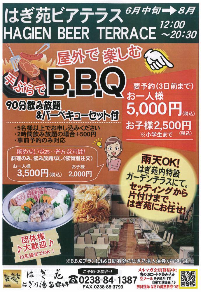 まもなくはぎ苑ビアテラスオープンします!90分飲み放題+バーベキューセット(焼きそば付)のボリュームをみなさまでご体感ください☆ご予約お待ちしております!はぎ苑 0238‐84‐1387www.hagien.co.jp