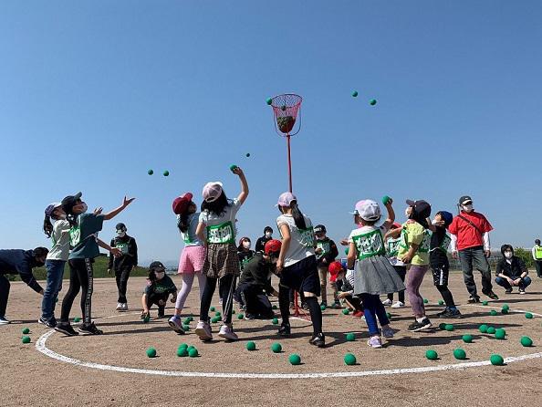 5月5日(こどもの日)に「第55回親子まり入れ大会」が開催されました。小学校体育館からグラウンドに会場を移し、競技前、後の手指の消毒、マスクの着用など新型コロナウィルス感染症感染防止対策を行いました。
