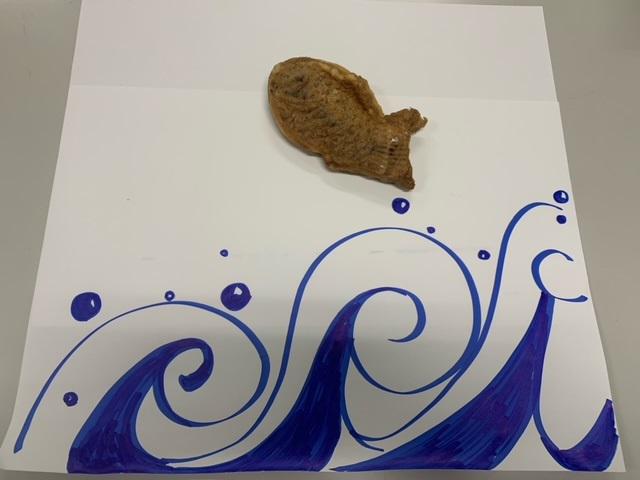 たい焼きを頂戴するといつもやってしまう…。泳げたい〇きくん世代なもので、泳がせたくなるんです。波。回数を重ねるごとに波を描くのが上手になっているような気がします。たい夢(イオンタウン南陽 敷地内)冷やしたい焼きの餡とクリーム。