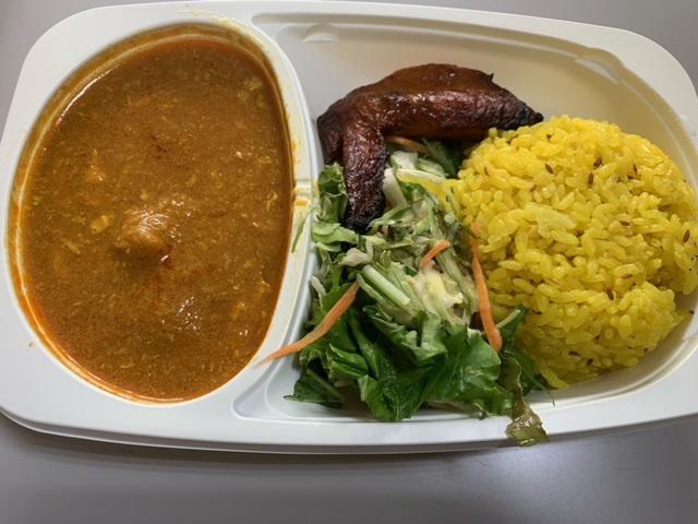 ラグパティ赤湯店(0238-49-7474)のインド弁当。いつもナンが美味しいです。あれ?サフランライスがいつもより多いような気がします。ラッキーでありがたや〜。