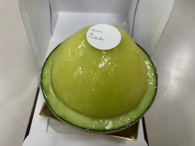 メロンまるごとのケーキをBEKOちゃんからまたまた頂戴しました。萬菊屋(510メゾン・ド・サンクディス 0238-43-2066)メロン。オープン! パンパカパーン!!美味しいクリームが入っています。