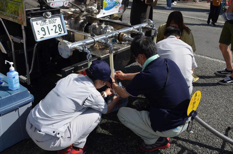 はたらく車大集合!南陽市の給水車。6リットルの非常用飲料水が入るバッグはリュックにもなります。重い水を運ぶ時に便利です。高所作業車。高いところで働く人はどんな感じなのかな?子ども達が体験しました。除雪用ショベルカー。このようにふざけてはいけません!の例になります。その他、陸上自衛隊のジープ車や救助工作車などが展示されました。
