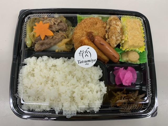 辰巳屋牛肉店(0238-43-2029)のお弁当です。お肉〜〜、美味しいお肉のパレードですよ〜〜〜。牛に豚に鶏に〜〜…烏賊?がアクセント〜〜〜。美味しく頂戴しました。