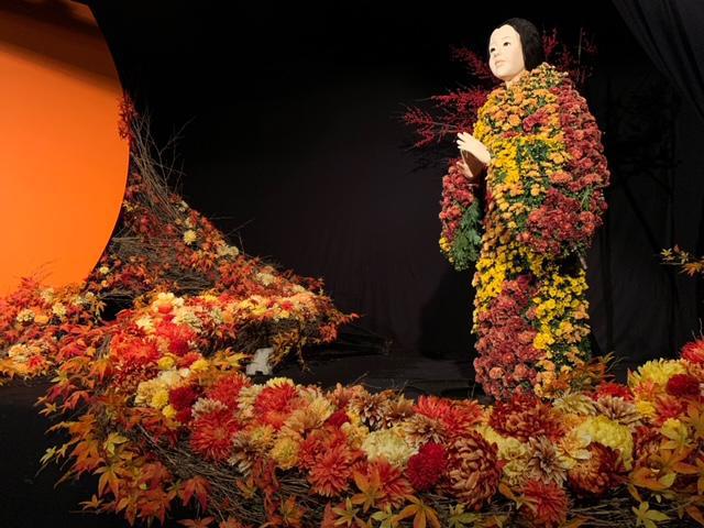 菊人形。子どもの頃、双松公園で開催されている菊まつりを見に行くのが楽しみでした。