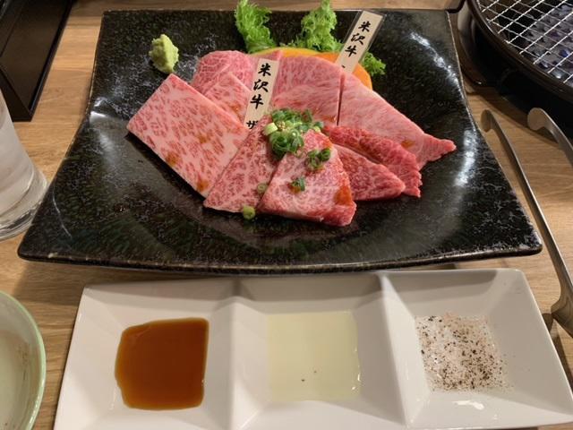 贅沢に焼肉ランチです。焼肉志らせ(0238-43-2477)ちょっと高いお肉をお昼からジュージュージュ―。お肉があるとご飯もすすむ〜〜〜。