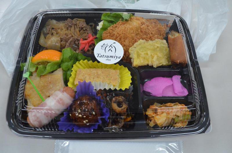 辰巳屋牛肉店(0238-43-2029)の折箱。品数沢山で安定した美味しさでした。