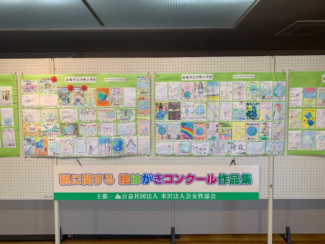 赤湯公民館展示ギャラリーでは、『税に関する絵はがきコンクール作品集』を展示中です。市内小学校の令和3年度6年生の作品です。ぜひご覧下さい。