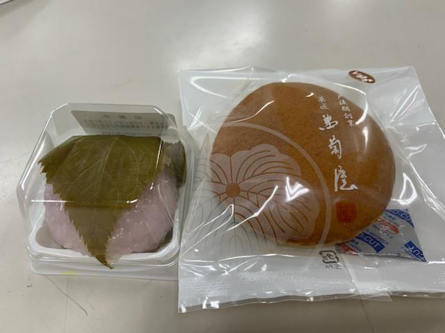 うっきうきの道明寺。道明寺を食べていない、と嘆いていたら頂戴しました。萬菊屋(0238-43-2066)の道明寺とどら焼きです。なんとも優しい上品な甘さの道明寺でした。