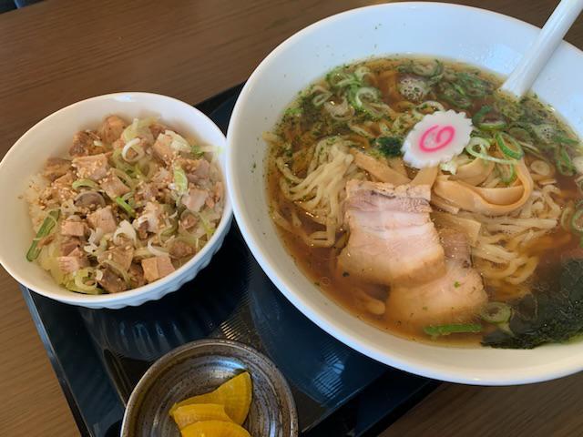 らーめん福のランチセット。ラーメンと葱チャーシューめし。カレーとかなんとかにもチェンジできるようでした。BEKOちゃんが食べました。
