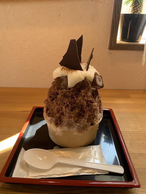 何年振りかのかき氷。おかしのアトリエAlice(宮内地内)ガトーショコラかき氷。口当たりの優しい氷とチョコレート味が美味しいです。 昔のかき氷は、シロップやミルク(練乳だった)がほんのちょっとしかかかっていなくて、その部分を食べてしまうとあとはザラザラとした氷だけ…。この後どうやって食べろと言うの?(´・ω・`)状態でしたね…。それも懐かしい…。