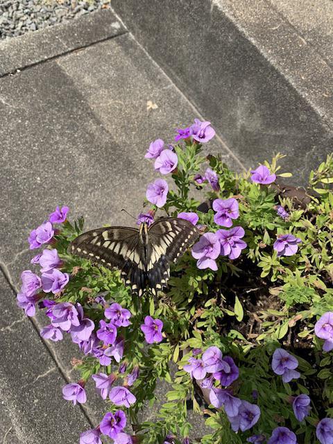つい先日、2,3日続けてアゲハ蝶がやってきました。1日目は近づくと逃げていたのに、2日目には慣れて逃げて行かなくなっていました。無害な人間と認定されたのか?ある意味当りです。私は小学生の時に読んだ漫画のトラウマで、蝶が苦手です。逆に私が逃げてしまいます。