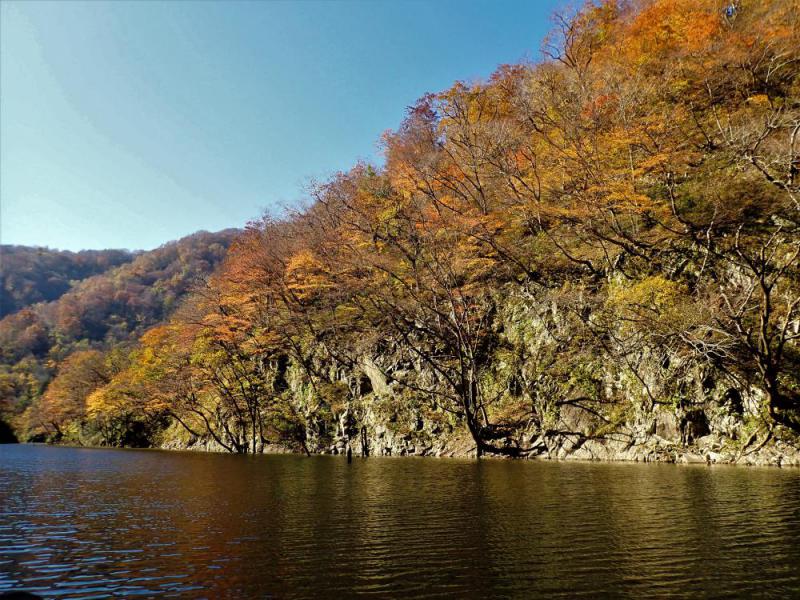 「三淵渓谷」は、晩秋を迎えつつあります。季節は確実に変わりつつありますが、紅葉はやっと訪れた秋を惜しんでいます。「絶景・三淵渓谷通り抜け参拝ボートツアー」は、本日も運航中です。今期の運航は、11月10日(金)、11日(土)、12日(日)、16日(木)、17日(金)、18日(土)、19日(日)です。ご家族、ご友人、ご夫婦、またお写真を撮られる方も是非お越しくださいませ。ボートからしか見れない風景が、皆様をお待ちしております。野川まなび館電話 0238-87-0605