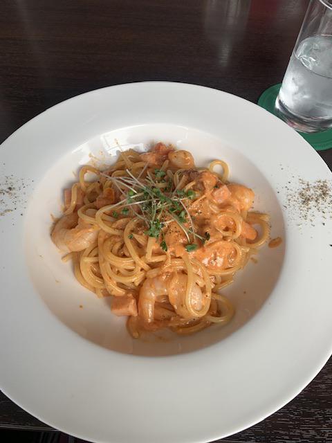 Grazie de Cuore(0238-40-8652)で初めてのランチ。夜のイメージがあったので、なかなか行けませんでした。ランチは生パスタセットのみ。パスタは12種類から選べるようです。(写真は海老とトマトのクリームパスタ)乾杯(ウェルカム)ドリンク、サラダ、スープ、パスタ、プチデザート、珈琲又は紅茶の流れです。ウェルカムドリンクがあるランチは珍しいですね〜。
