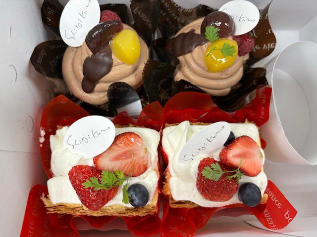 白いくもバイパス店(0238-43-8988)のケーキ。頂戴しました。迷う…、チョコレートか生クリームか。