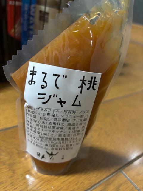 百姓ワタナベの『まるで桃ジャム(プラムジャム)』。プラム自体の酸味と甘みがあります。さっぱりとした、というのか、口の中にいつまでもベタベタ感が残らない甘さです。そのままスプーンに出して食べて、を繰り返してしまいました。飽きない。(でも、カロリー的にヤバそうなのでヨーグルトにかけてみた)クラッカーにクリームチーズとジャムを載せて食べたらスイーツ。紅茶に入れても美味しそう。でも、やっぱりそのまま食べるのが最高。?