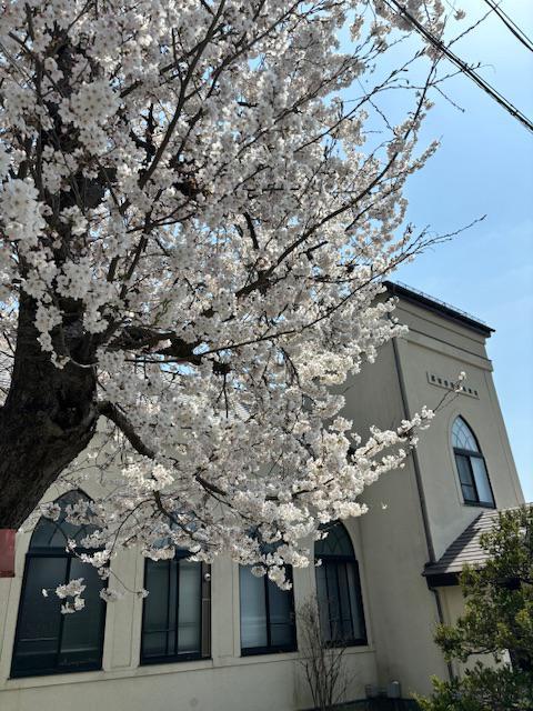 宮内キリスト教会の桜。「キリスト幼稚園」と言ってしまうのはここの卒園生だから?礼拝堂への扉が開いていたので、覗いてみたかったのですが…。やめました…。
