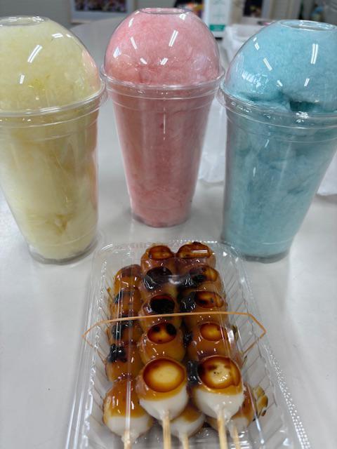 お祭りには屋台。何年ぶりかでわたあめを食べました。今はいろんなフレーバーがあるんですね!