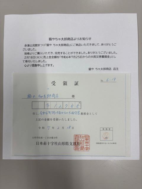 多くの皆様にご来店いただき、またご購入いただきまして、ありがとうございました。売上金全額を「令和6年7月25日からの大雨災害義援金」として寄付いたしました。心より感謝申し上げます。 なにより、商品をご提供いただきました皆様へ厚くお礼申し上げます。本当にありがとうございました。