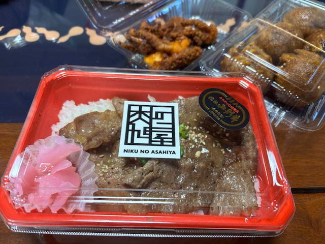 肉の旭屋(0238-43-2639)の山形牛と米沢豚のミックス焼肉弁当と…、いろいろ。