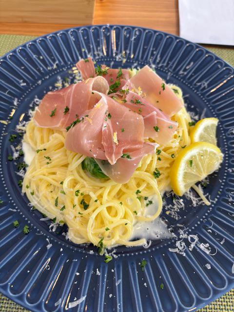 エンフィーロでパスタランチ。青、黄色、ピンクが春っぽい。私の勝手なイタリアのイメージ色。