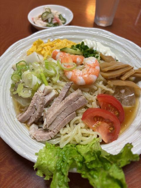 夏は冷し中華。子どもの頃は酸っぱさが苦手で食べられなかったのですが、今は5月頃から食べたくなるのです。小龍姫(0238-43-5063)の冷し中華の特徴は、イカが入っている!