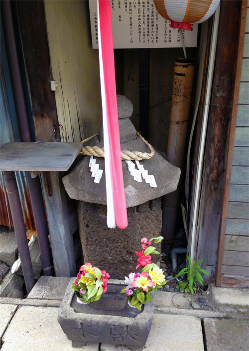 古くから市神様(いちがみさま)で親しまれている上山の商店街の中心部に鎮座する地蔵菩薩様です。