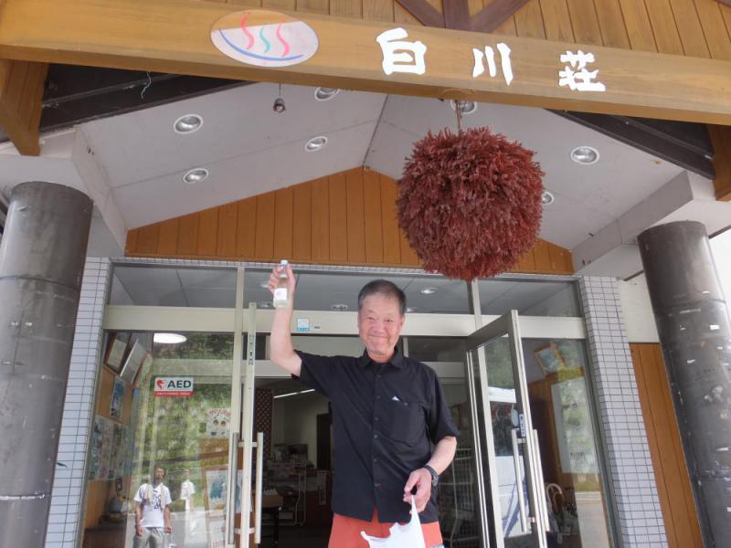 全国の百名山を登り続けて、この度最後の山 「飯豊山」 を登り切り、めでたく百名山の全山制覇を成し遂げた男性が、その喜びを報告がてら白川荘にお立ち寄り下さいました。たいしたもんですねぇ。せっかくなので、地元の「若乃井酒造さん」の清酒「飯豊山」をプレゼントさせていただきました。 これからも、新たな目標に向かって頑張って下さーい。 ヤッホー!!