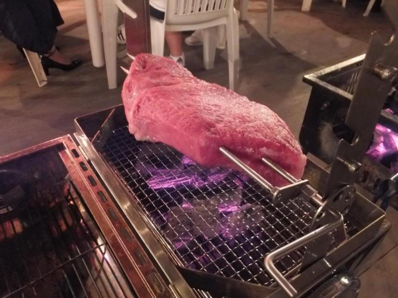 白川荘バーベキューハウスは今日も70余名のお客様で大賑わい。ボリュームたっぷりの霜降り飯豊田中牛に舌鼓。思わず「ウメェー!」と絶叫。今夜はナント、「丸焼きクン」も登場、日々進化してます。