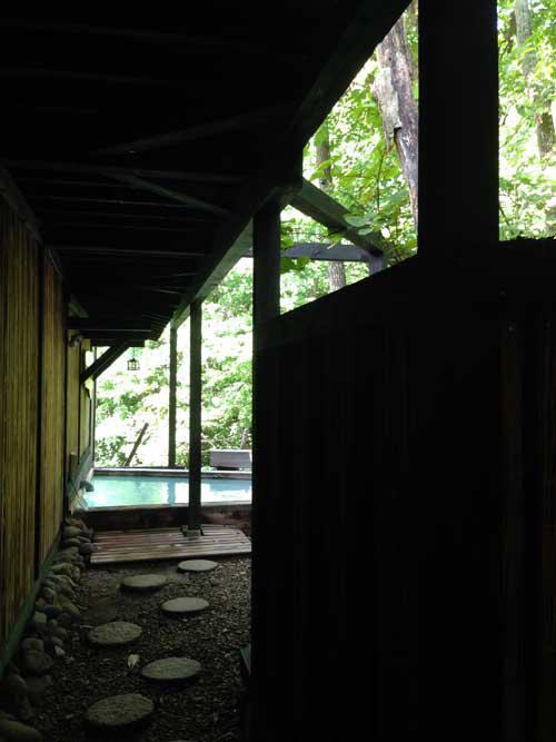 内風呂から露天風呂へ続く道