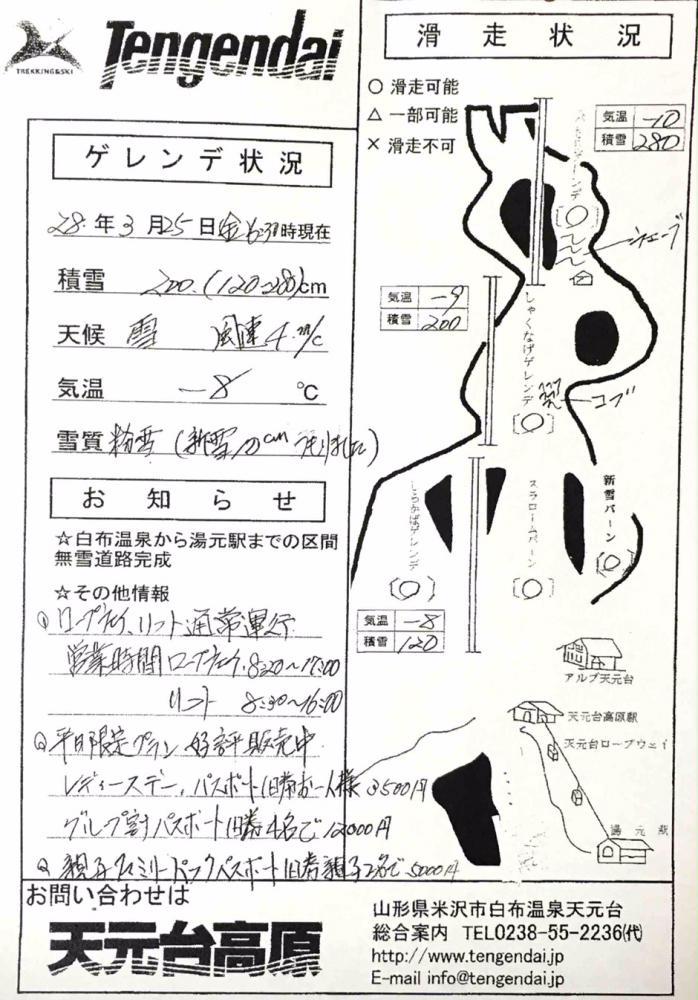 ▼天元台スキー場ゲレンデ情報 2016年3月25日