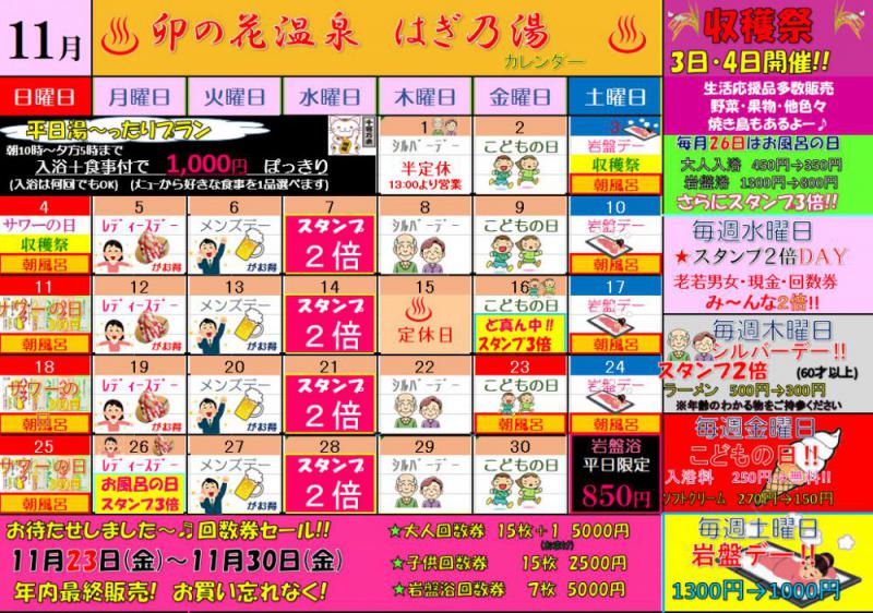 ▼11月 はぎ乃湯カレンダー /はぎ苑
