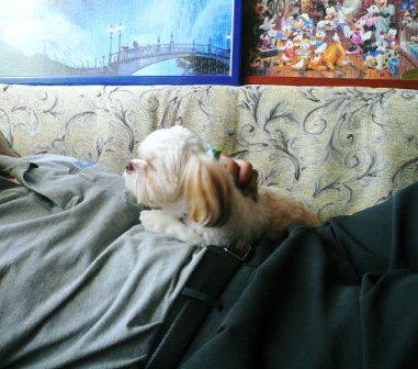 早速、主人のお腹の上に乗って来て、マッサージの催促をしていました。久しぶりなので、よほど気も良かったのでしょう。リラックスモードです。