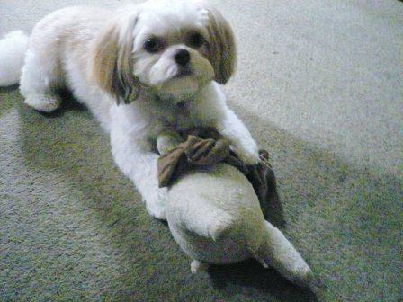 私のクリーニング済みストッキングを噛んで遊びまわっておりました。