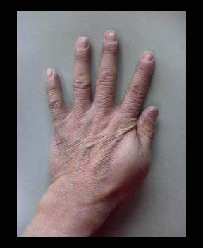腕の力こぶや太ももの大きさに目が行ってしまうことが多いのですが、手の甲のこんな部分の筋肉にも加圧トレーニングの効果が出ています。