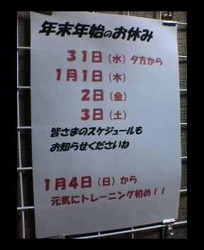 久しぶりの更新と思ったら、年末年始のご連絡でした。