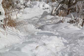 実は、以前は私もカミさんもスノーシュー(西洋カンジキ)を使っていたが、先輩から勧められ、試しにこの岩倉:Iさん作の「輪カンジキ」を使ってみたら、その使い勝手の良さと軽さの差があまりに大きく、それはもうマギレもない<カルチャーショック!>。