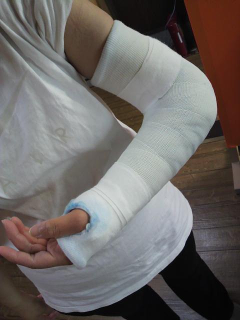 転んで肘を脱臼してしまいました・・・。
