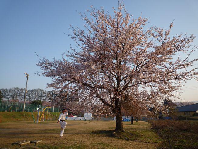 そこで空手の型を打つ。